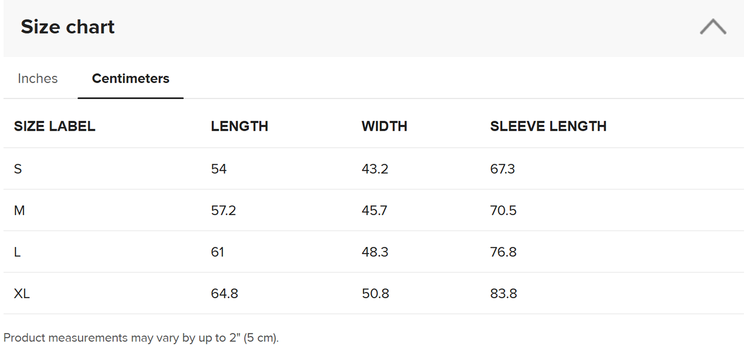 • Double-needle stitched collar, shoulders, armholes, cuffs, and hem